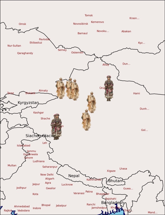 - Xinjiang, Yili Region — Chabuchaer County, Abusanteer — A pastoral community integrated into the trade and communication routes of the Ili Valley. Abusanteer individuals show mixed ancestry typical of populations interacting with migrating merchants, herders, and military envoys.
